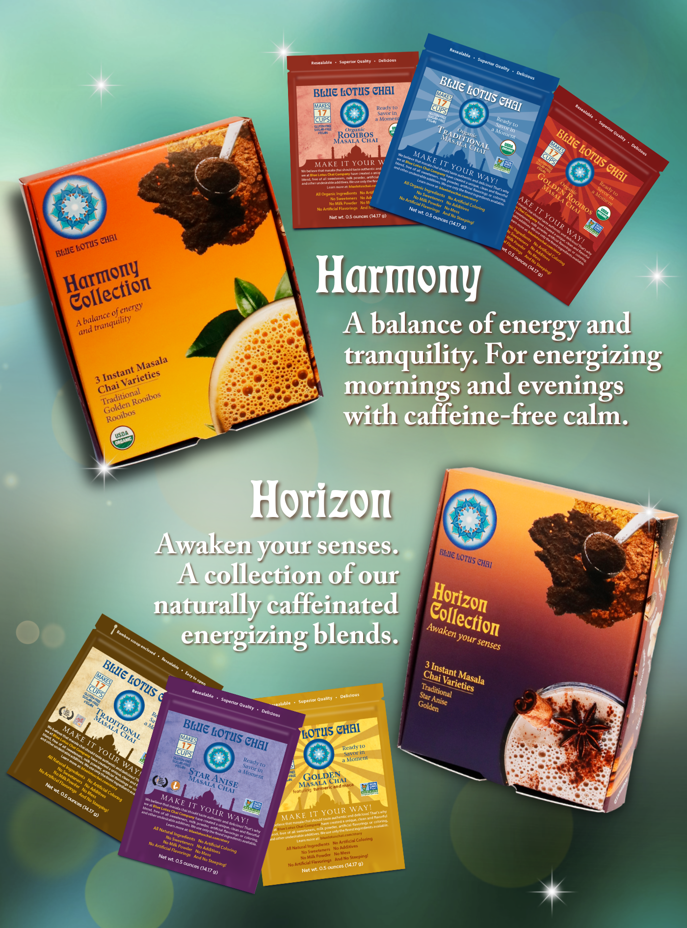 Three masala chai varieties in each collection.
