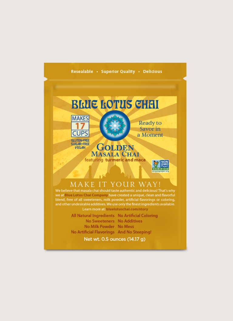 Blue Lotus Chai is unsweetened with no milk powders, artificial ingredients, or preservatives. Non-GMO Certified, Gluten Free, and Vegan.