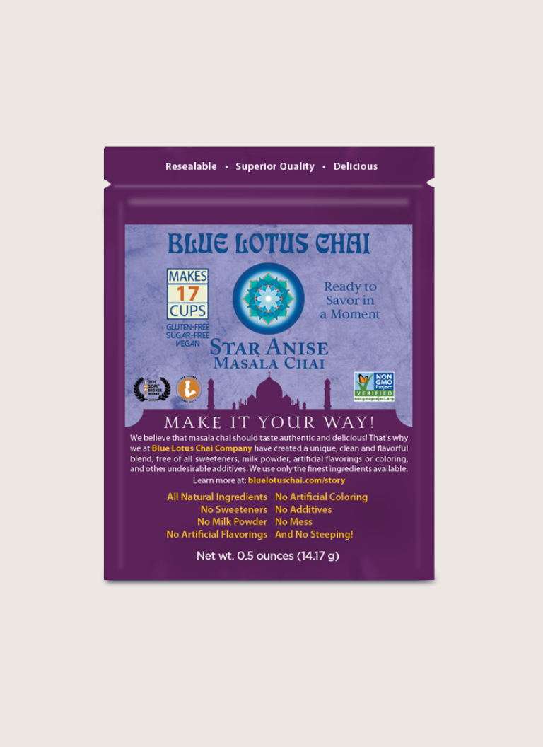 Our Award Winning Star Anise Masala Chai brings a unique and distinct flavor that will have you reaching for a second cup. Smooth, rich notes of licorice compliment our six signature spice blend for an instant masala chai that is deliciously aromatic.