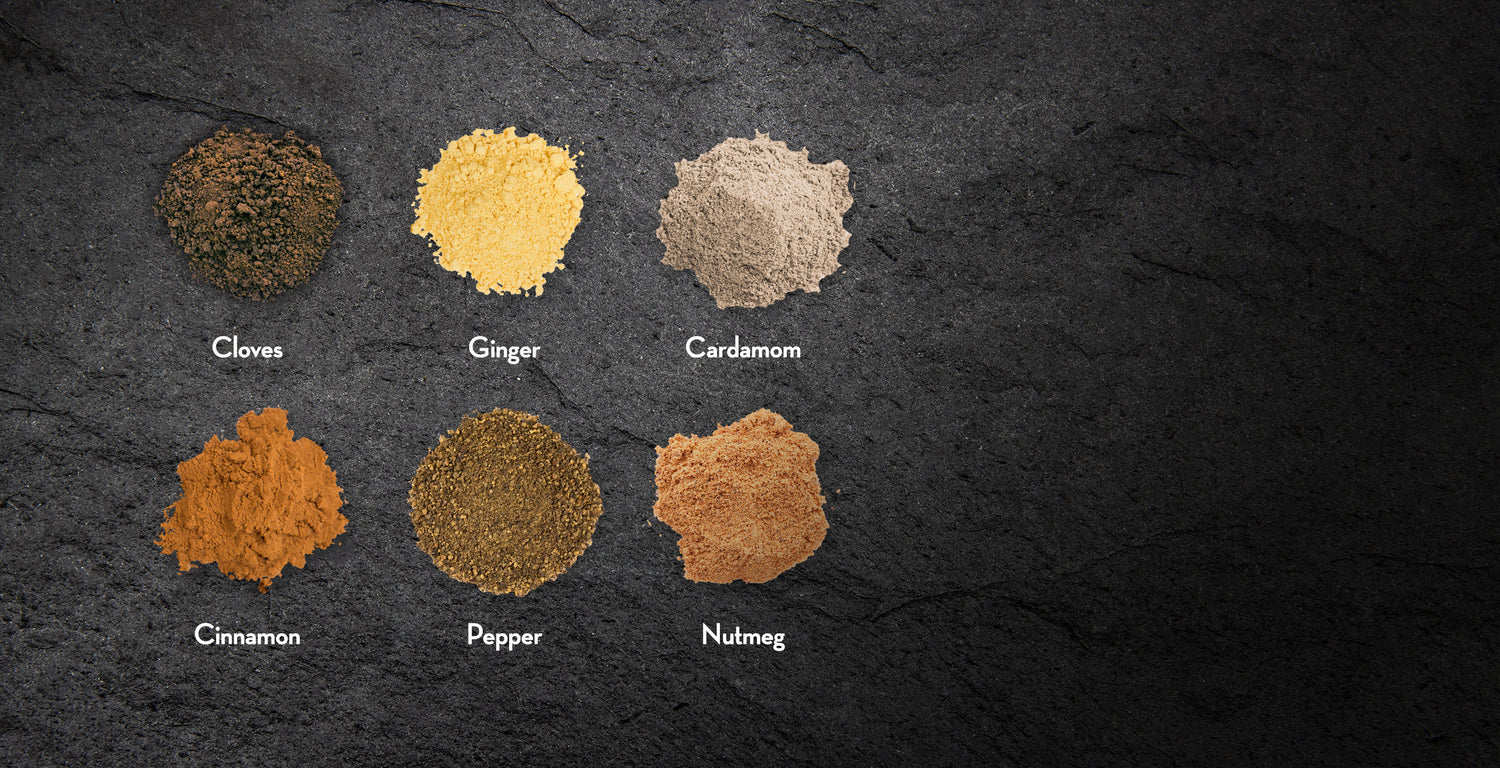 Naturally brewed and flash-dried black tea powder, ginger root powder*, ground cardamom*, ground black pepper*, powdered cinnamon (cassia)*, ground nutmeg*, ground cloves*